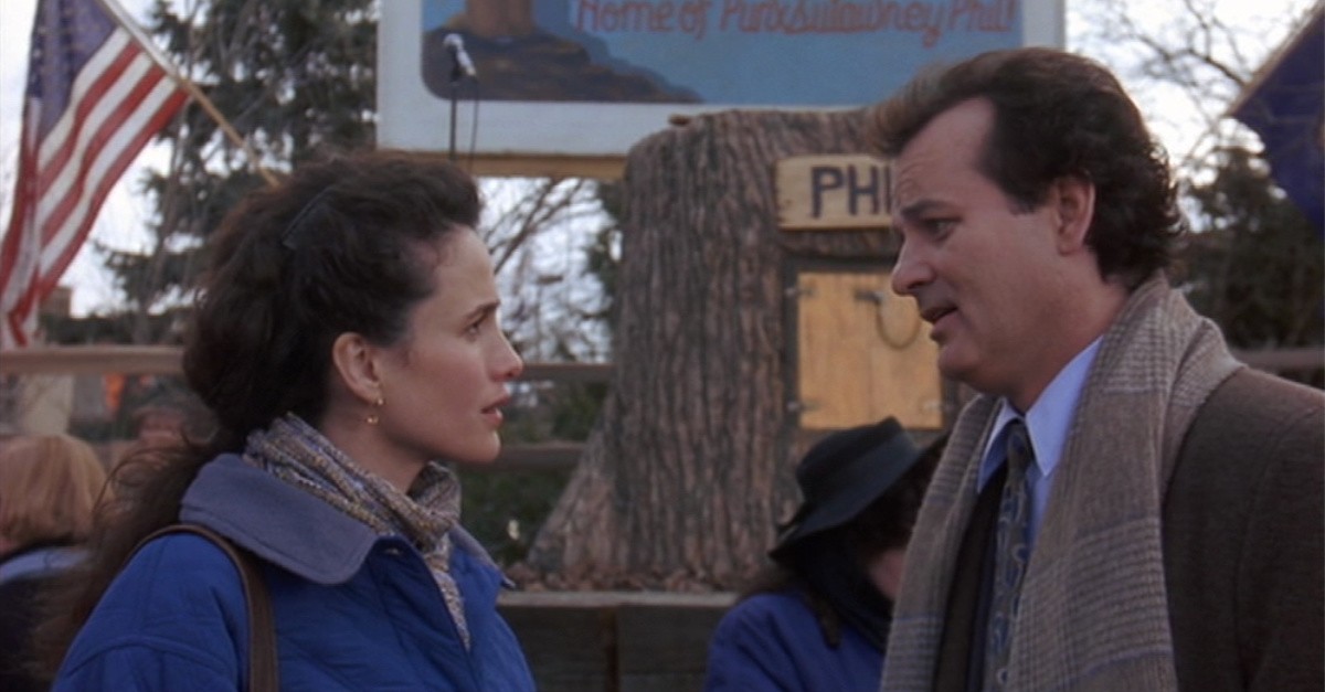 A self-centered television weatherman named Phil (Bill Murray) is sent to Punxsutawney, Pa., to cover the annual Groundhog Day festivities but soon gets stuck in a “time loop,” waking up on the same day, over and over.