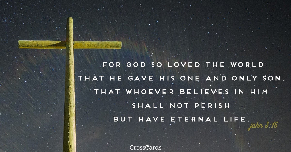 “For God so loved the world, that He gave his one and only son, that whoever believes in him should not perish but have eternal life” (John 3:16).
