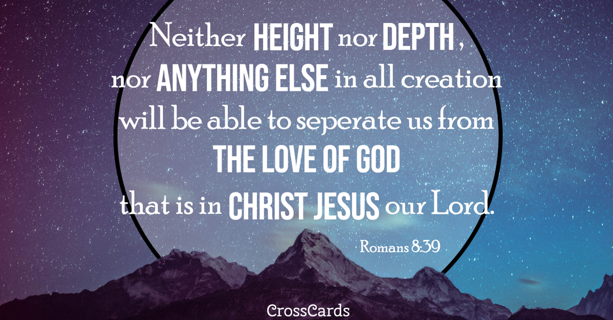 “Neither height nor depth, nor anything else in all creation, will be able to separate us from the love of God that is in Christ Jesus our Lord” (Romans 8:39).